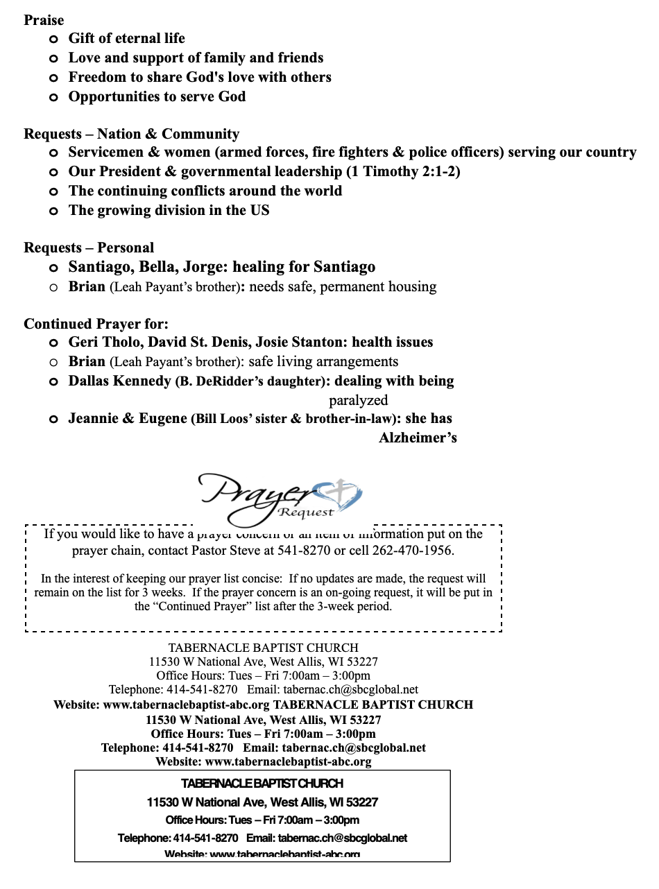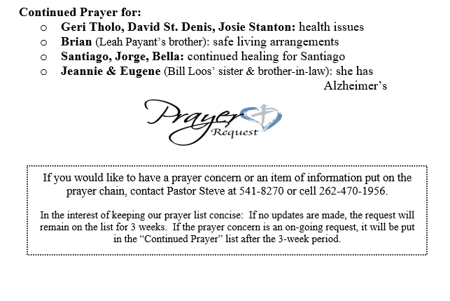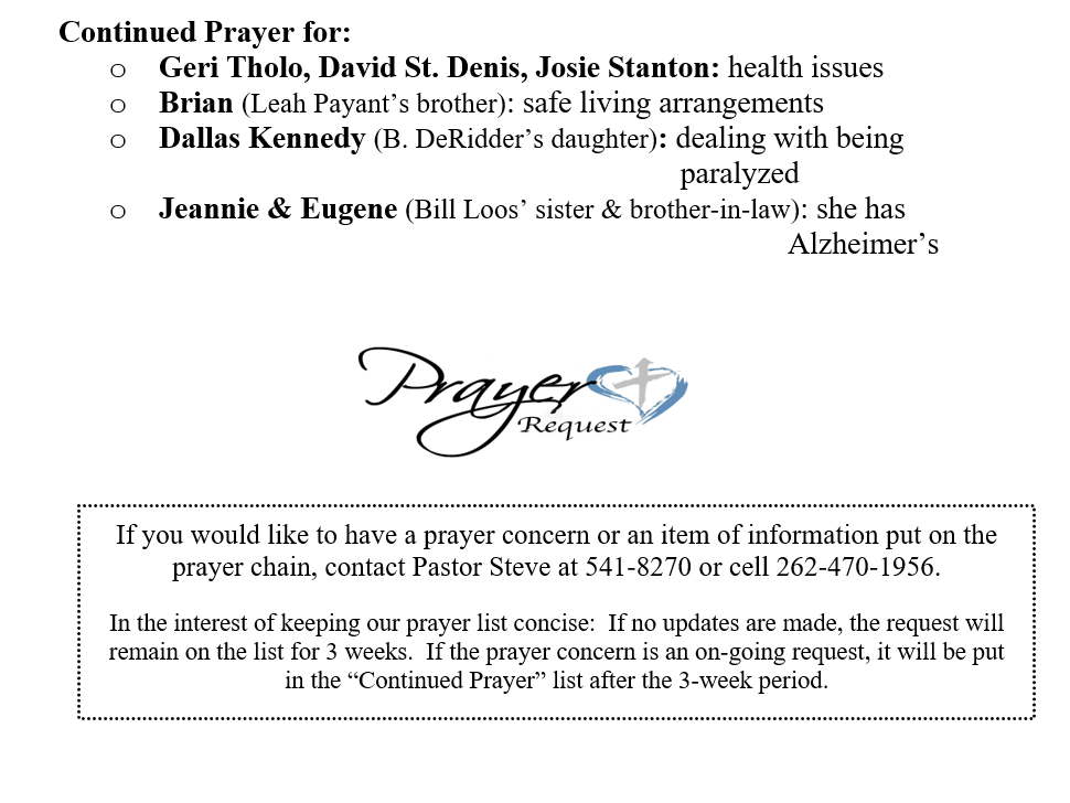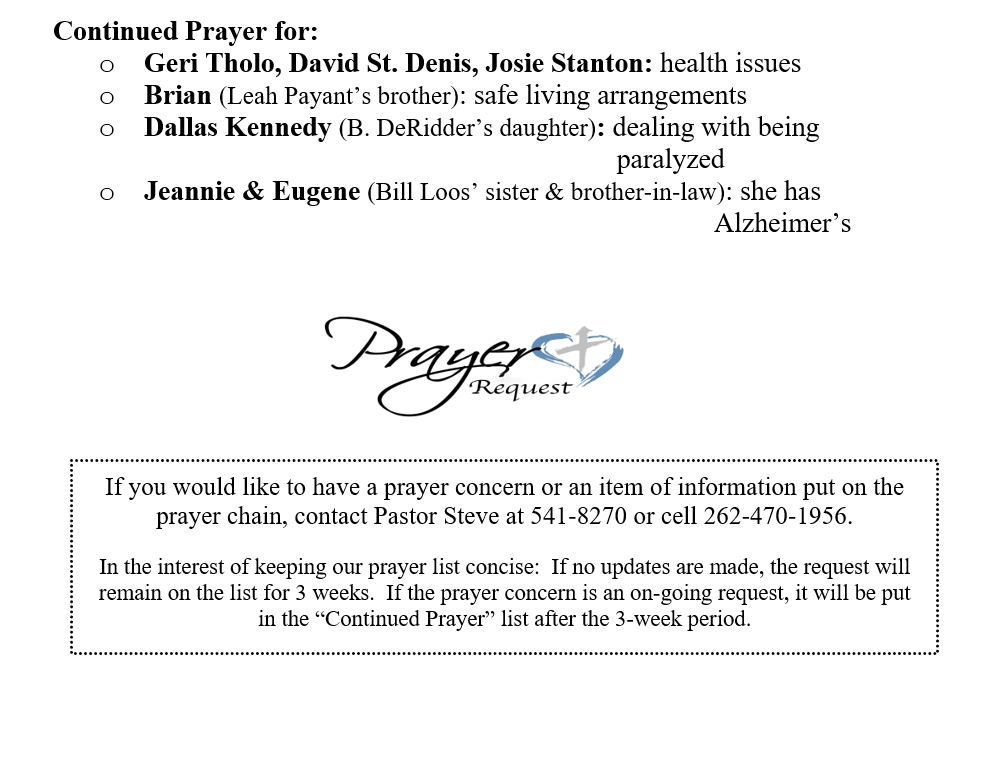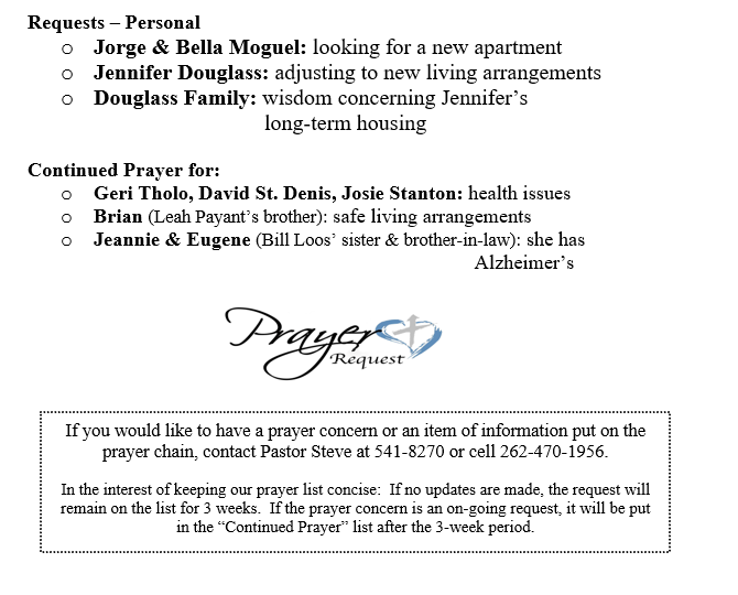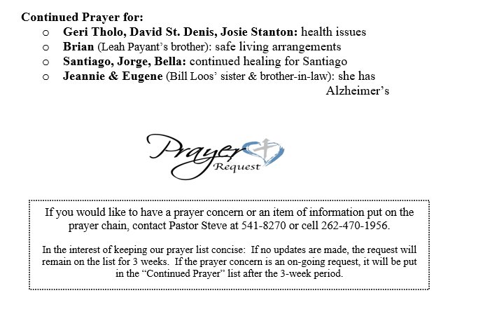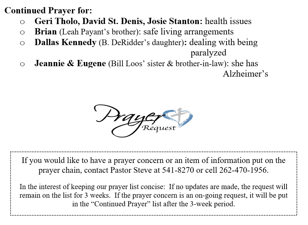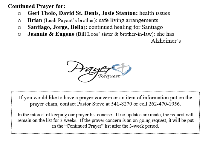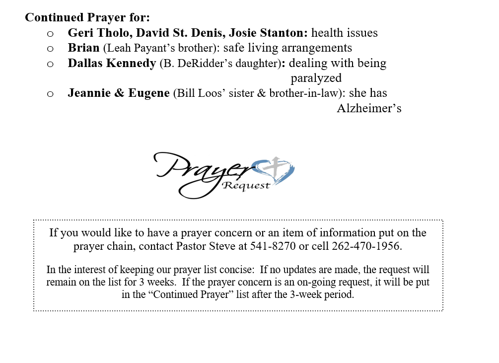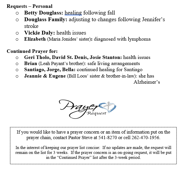 PRAYER CONCERNS SEPTEMBER 21, 2025